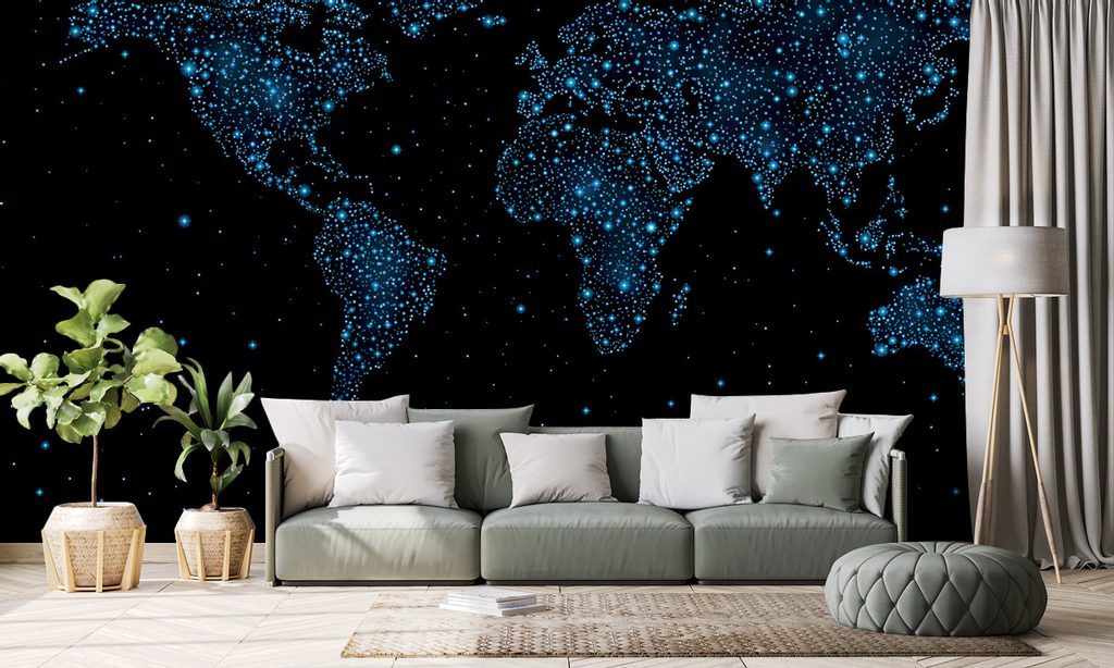 Öntapadó tapéta világtérkép az éjszakai égbolton
