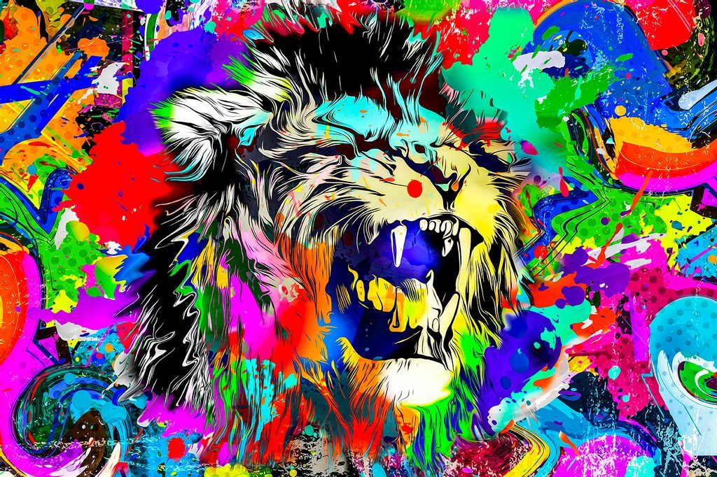 Oroszlánfej öntapadó tapéta pop art stílusban
