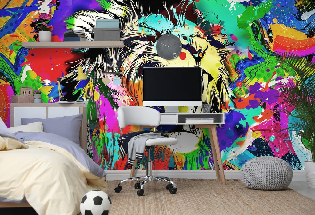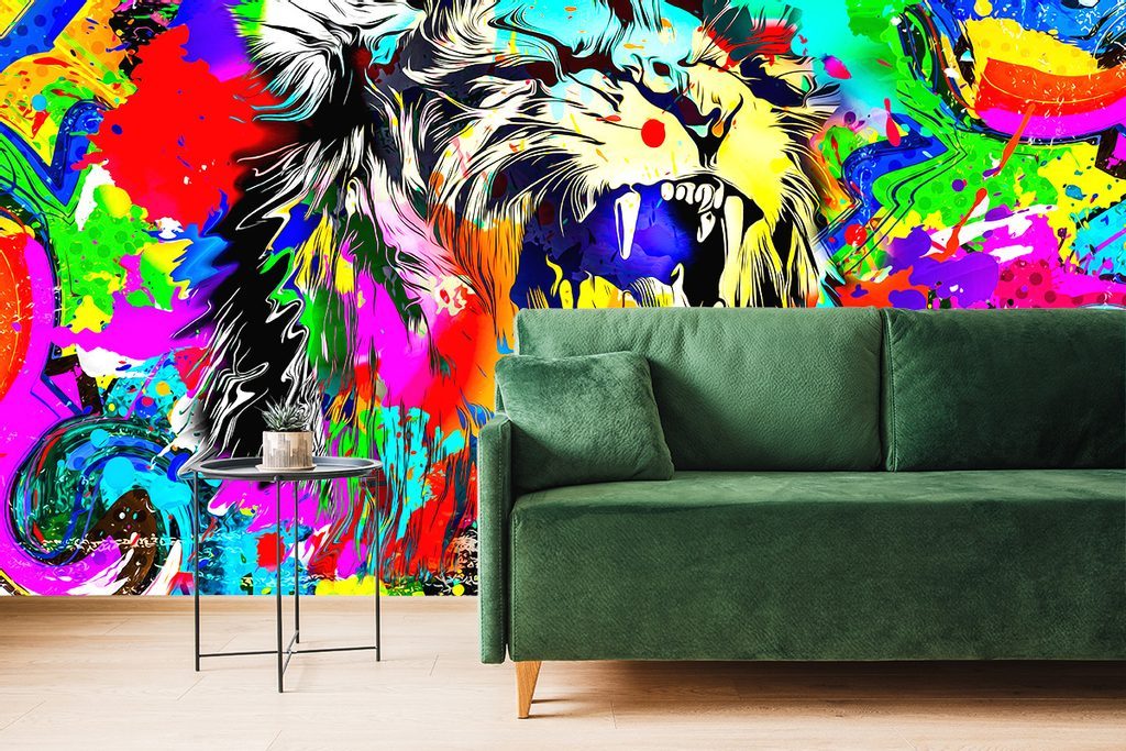 Oroszlánfej tapéta pop art stílusban
