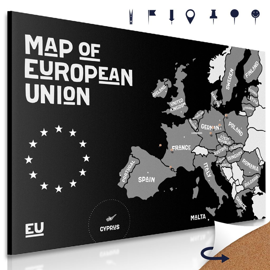 Parafa kép fekete-fehér térkép az Európai Unió országairól