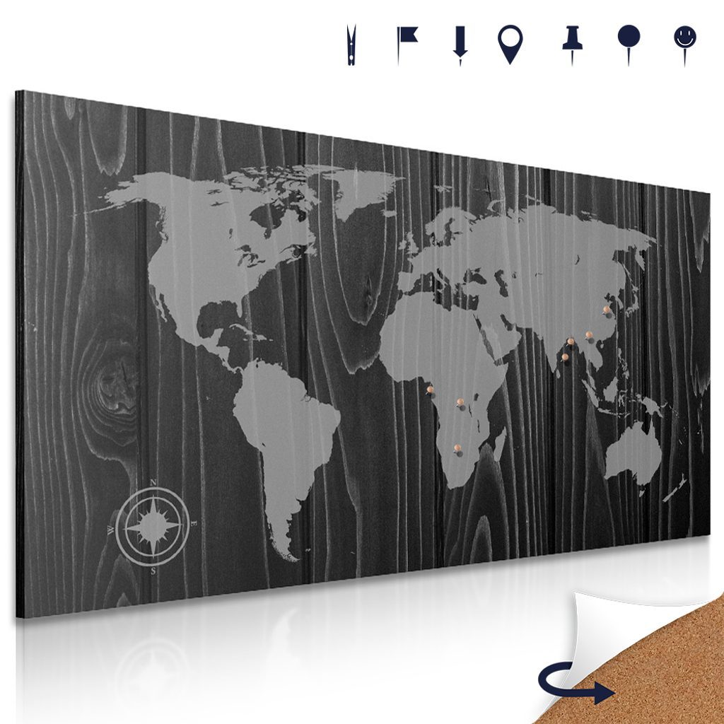 Parafa kép fekete-fehér világtérkép fán, luxus kivitelben