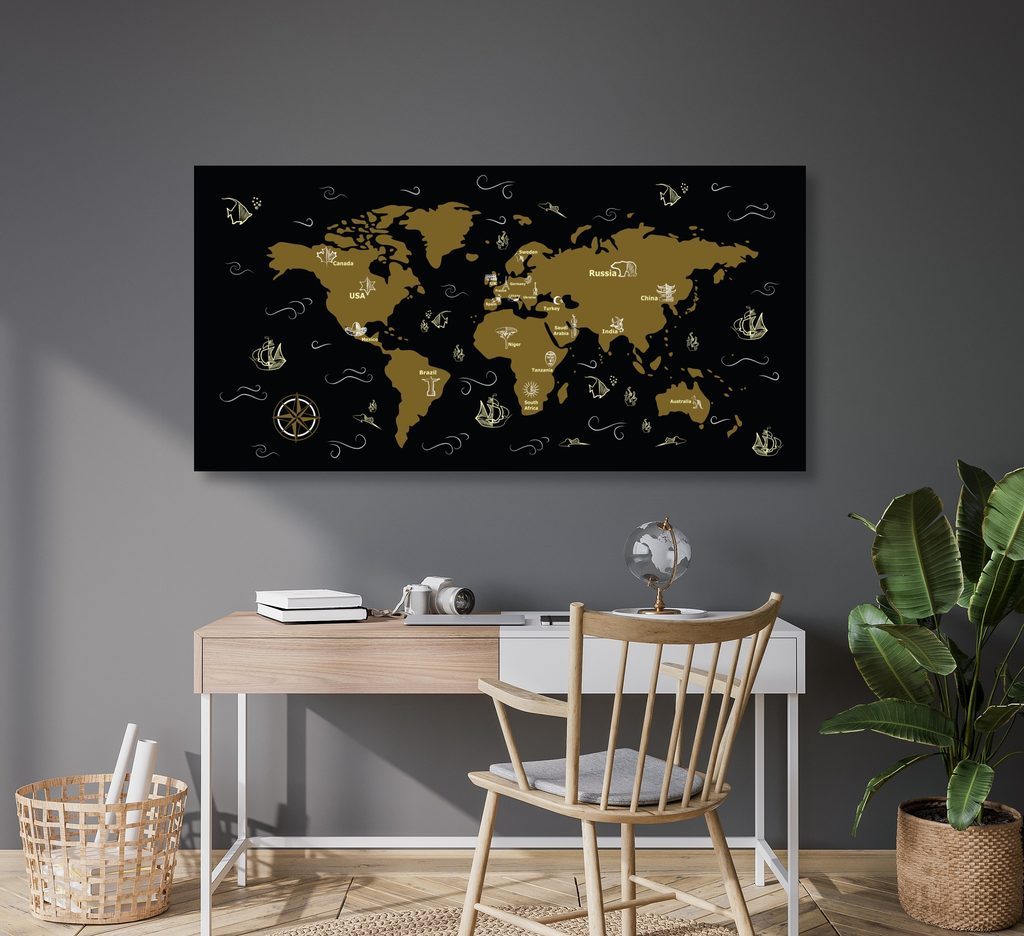 Parafa kép fekete-fehér világtérkép modern kivitelben