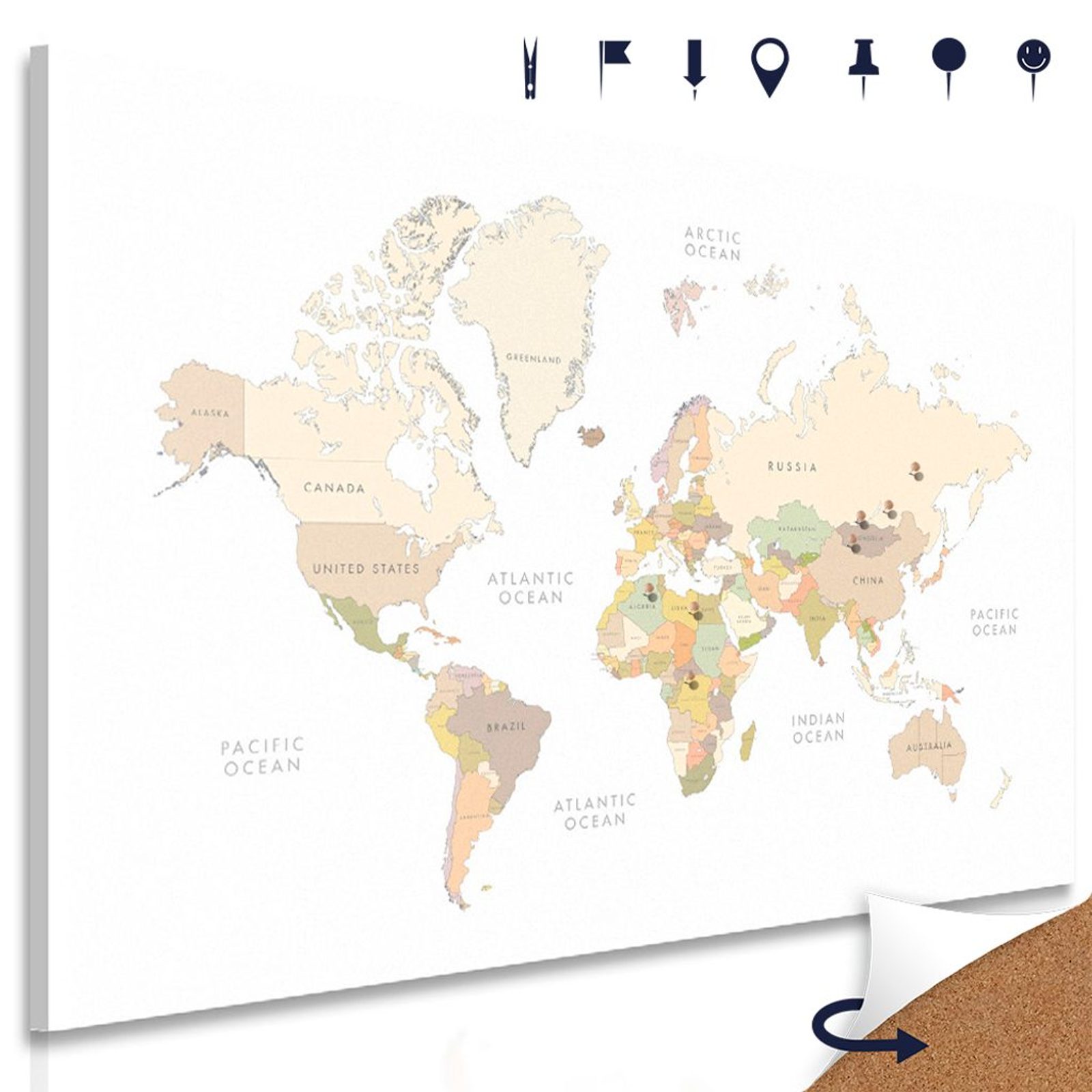 USP előnyök térképek parafán A kép tartalmaz 10 db gombostűt az ön választása szerint, Könnyű telepítés, Egészen 3 mm vastag parafa tábla, Változatos termékfelhasználás – ajándékként is alkalmas