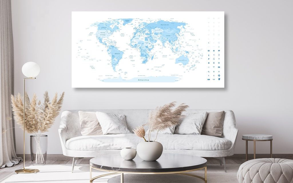 Amellett, hogy a képet azonnal felakaszthatja a falra, nem kell megfeledkezni egyetlen helyszínről sem, és így nem fog elrontani semmit azzal, hogy egyszerűen valamelyik falnak támasztja, vagy bútorra helyezi. Előnye, hogy van egy csomag térképtű jár hozzá, amellyel különböző helyeket jelölhet meg. Számos felhasználási lehetőség van, pl.