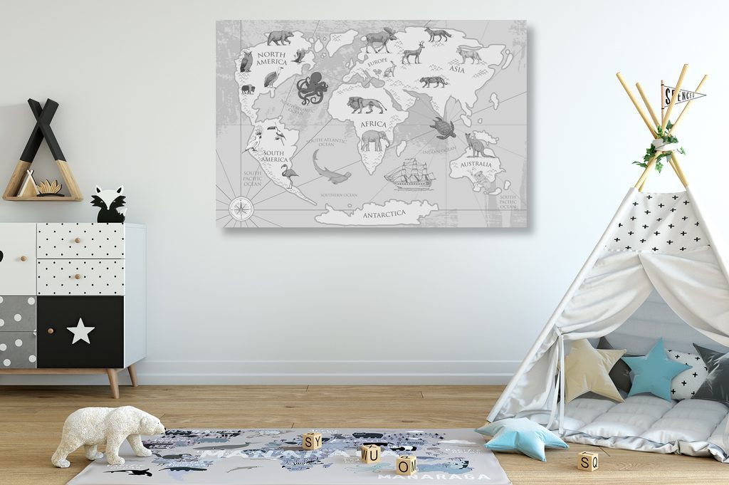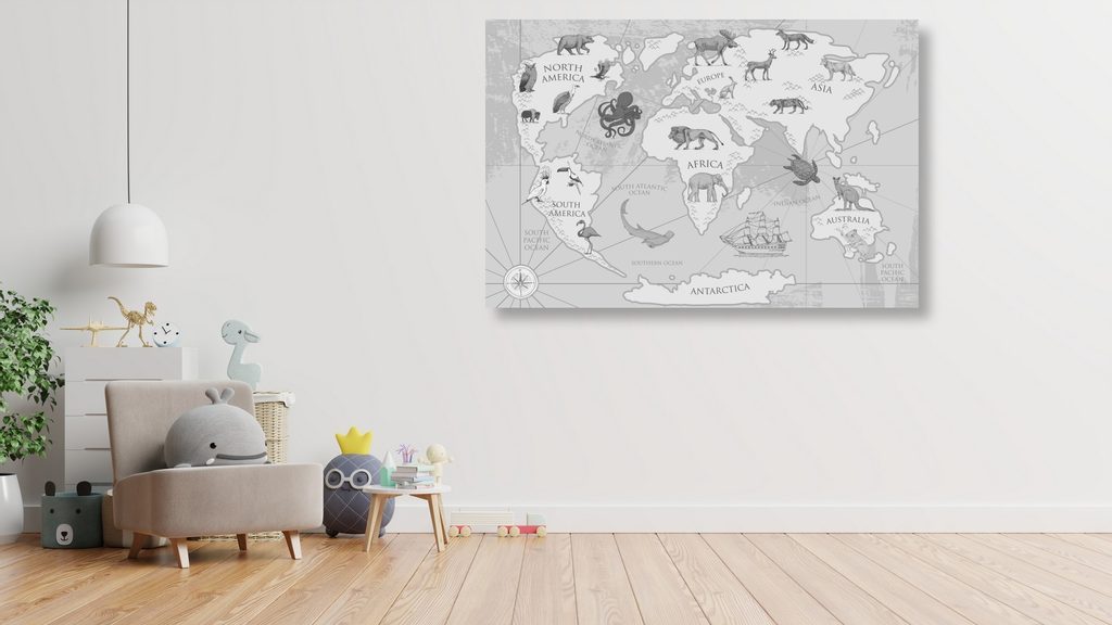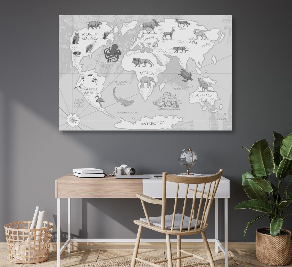 Parafa kép világtérkép gyönyörű fekete-fehér részletekkel