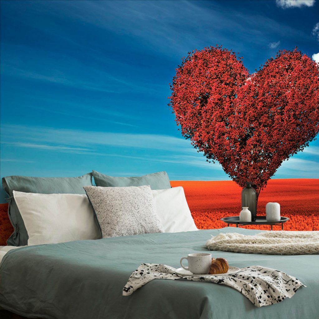 Szív alakú öntapadó tapétafa a rét közepén