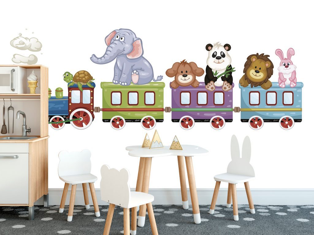 Tapéta állatokkal teli vonat