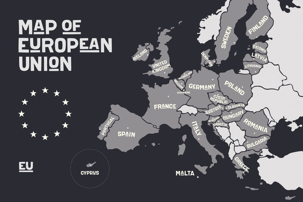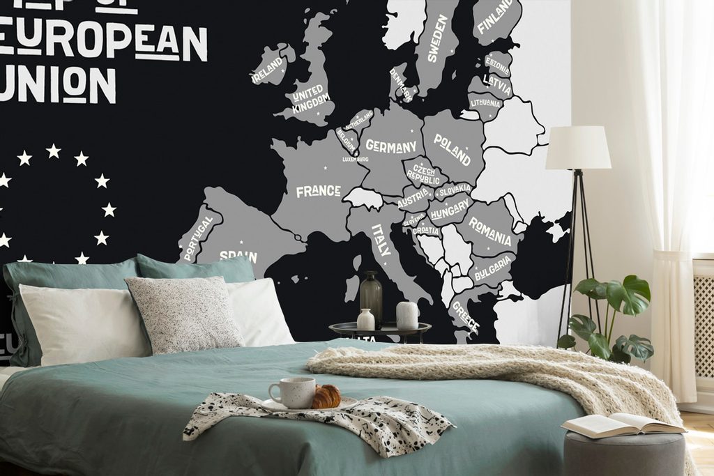 Tapéta Az Európai Unió fekete-fehér térképe modern kivitelben