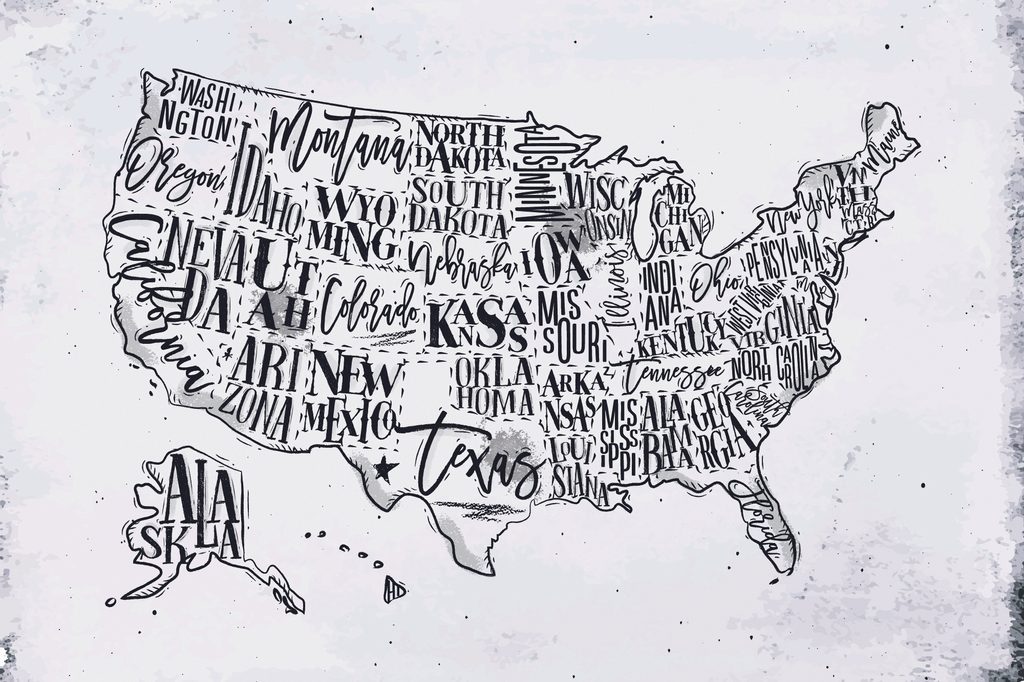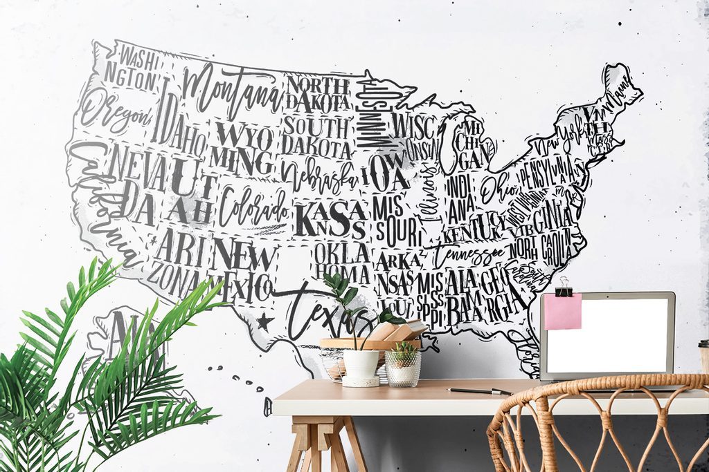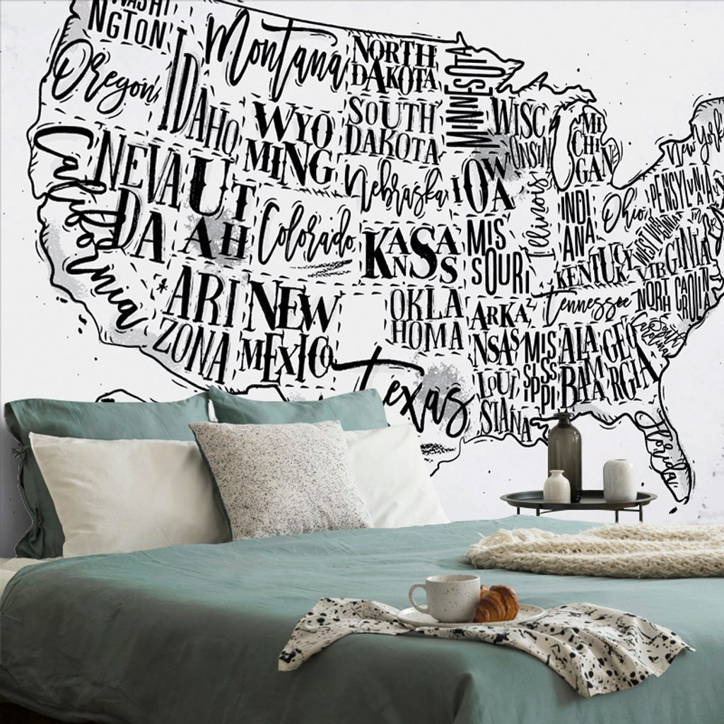 Tapéta az USA érdekes térképe fekete-fehérben