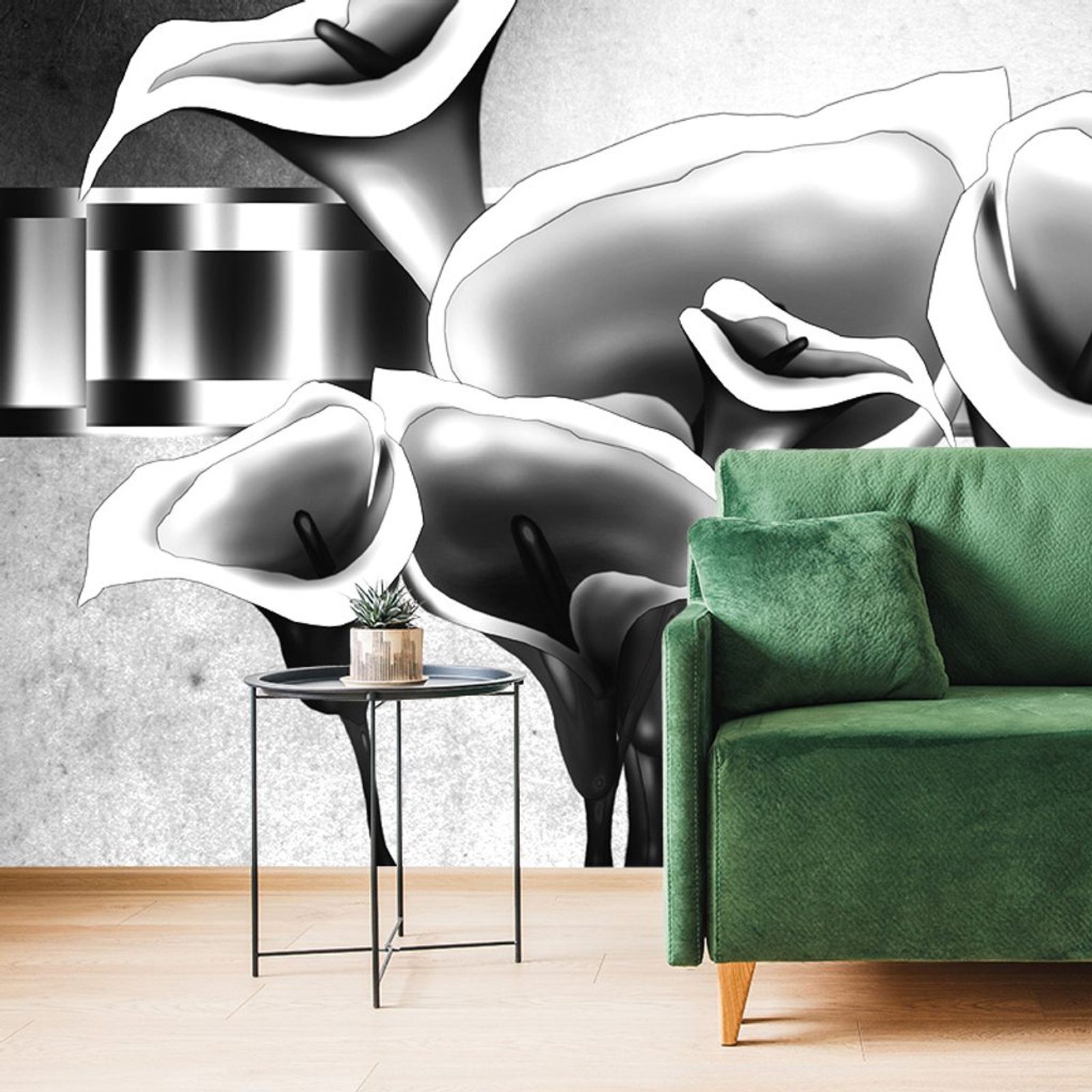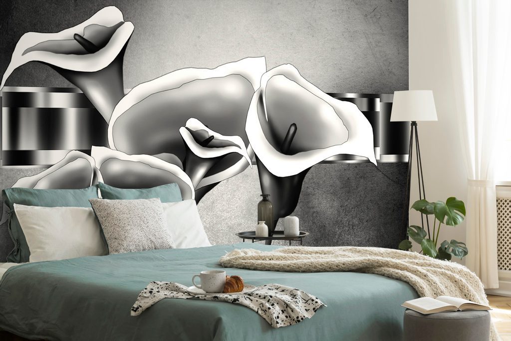 Tapéta bájos etnikai calla virágok fekete-fehér kivitelben