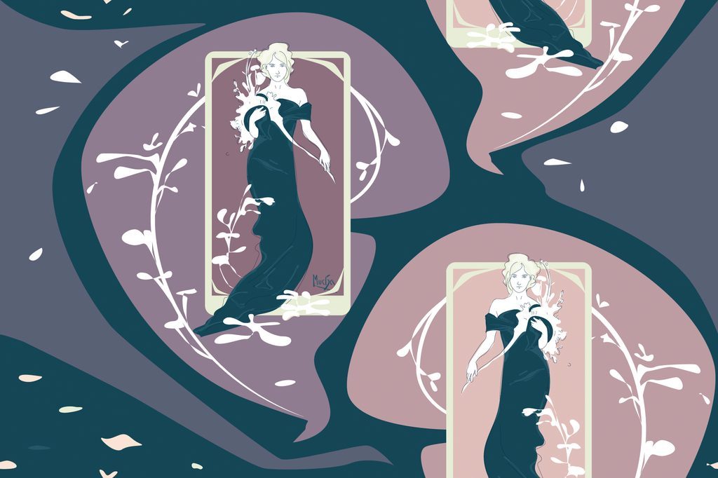 Tapéta egy gyönyörű nő ábrázolása sötét változatban