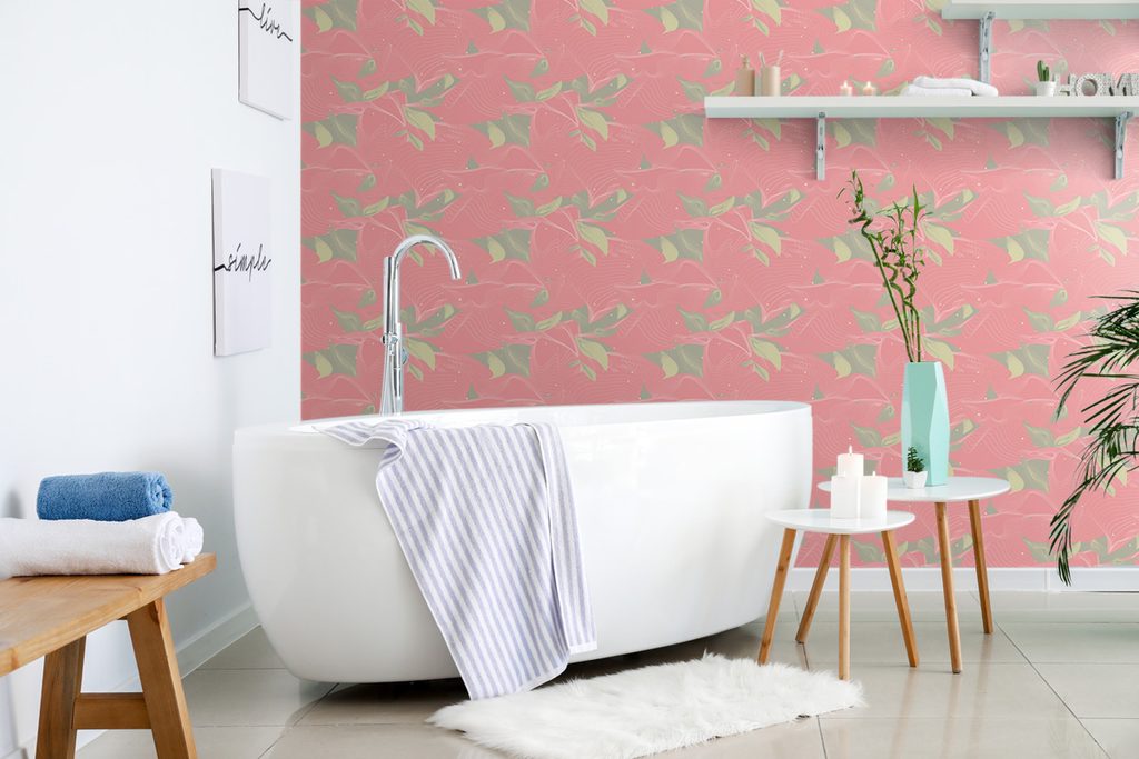 Tapéta érdekes levelek rózsaszín kivitelben