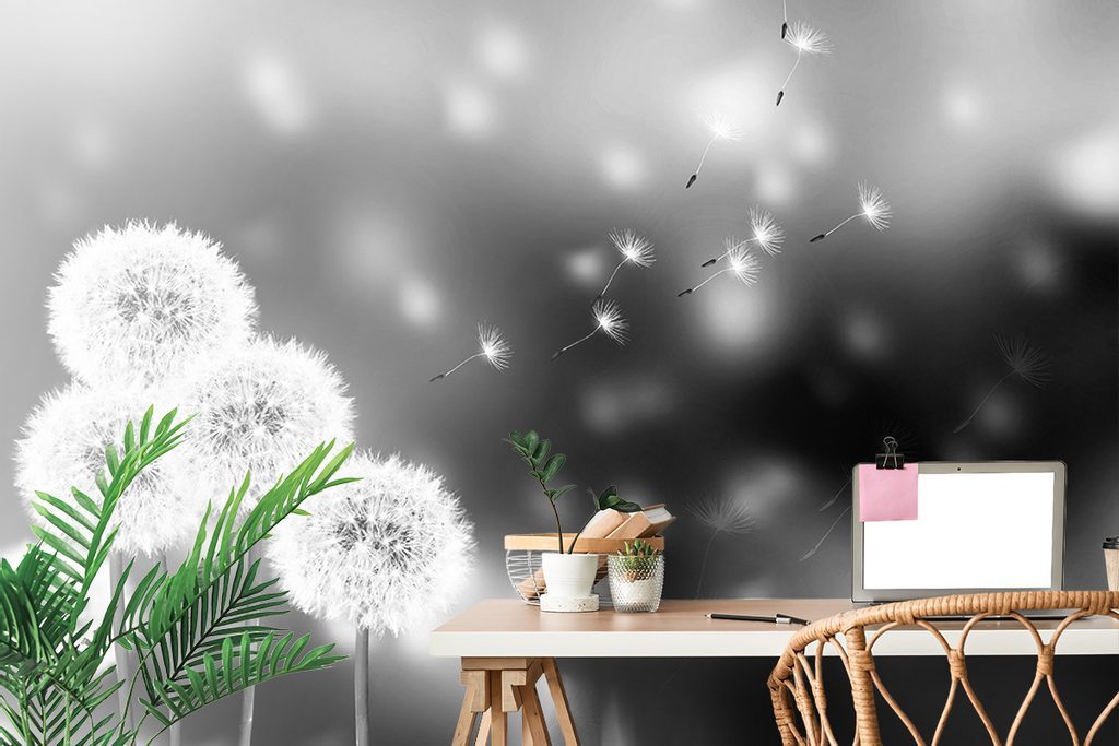 Tapéta fekete-fehér bolyhos pitypang sapka