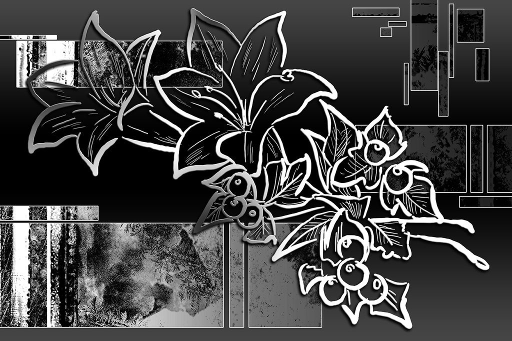 Absztrakt Virágok Fekete fehér