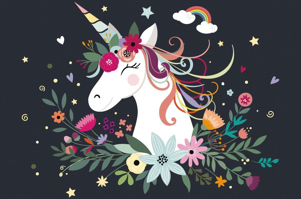 Tapéta gyönyörű egyszarvú virágos háttérrel