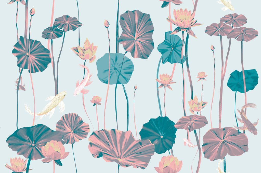 Tapéta Japán ponty a tündérrózsák között fényes kivitelben