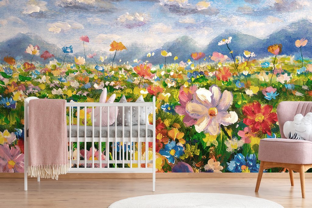 Tapéta olajfestmény rét tele virágokkal