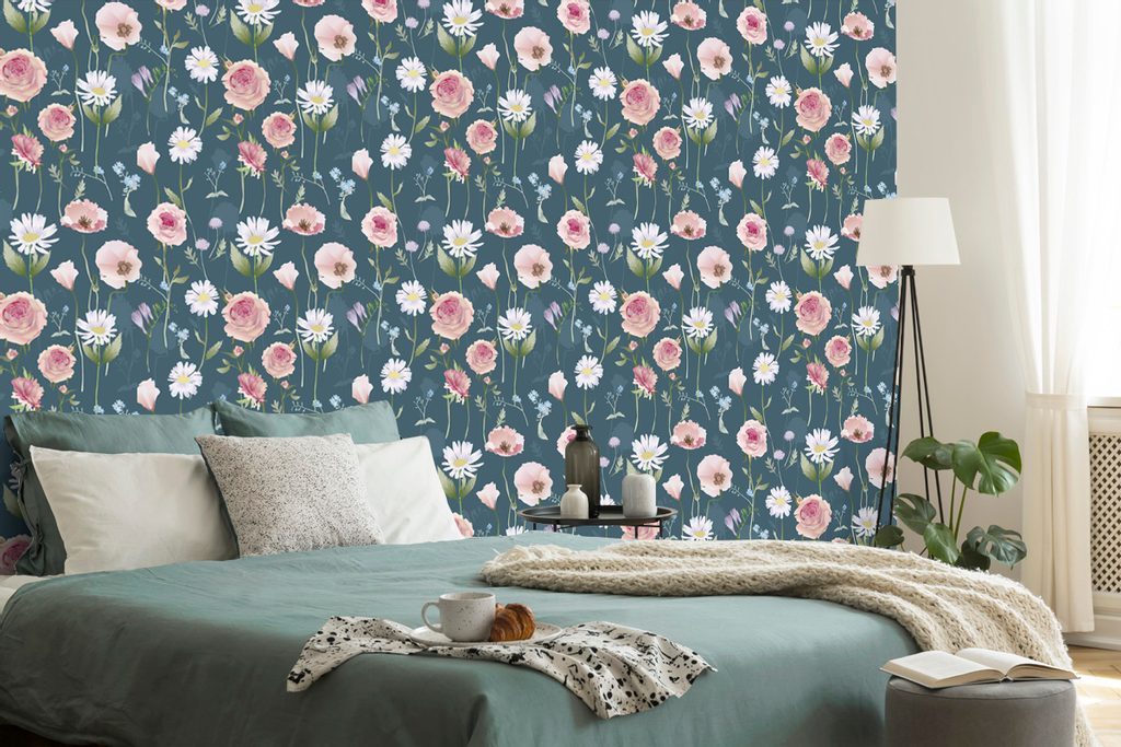 Tapéta réti virágok kék kivitelben
