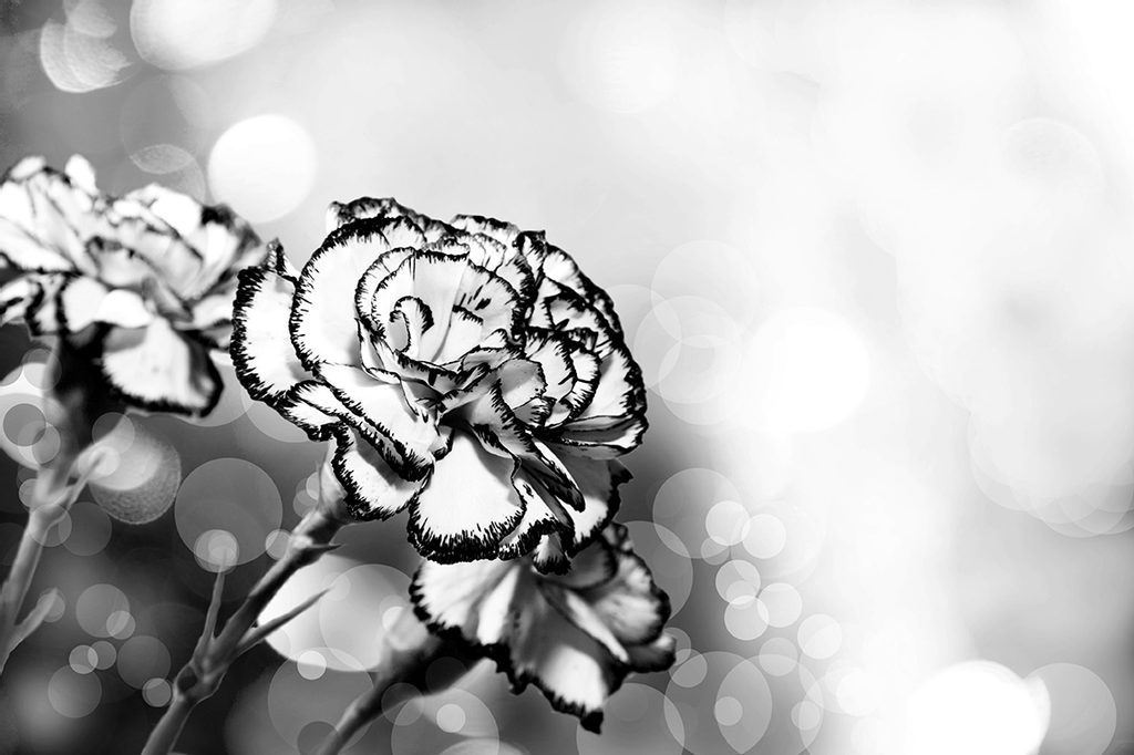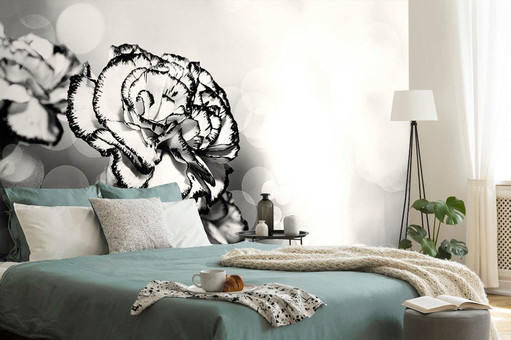 Tapéta romantikus szegfűvirág fekete-fehér kivitelben