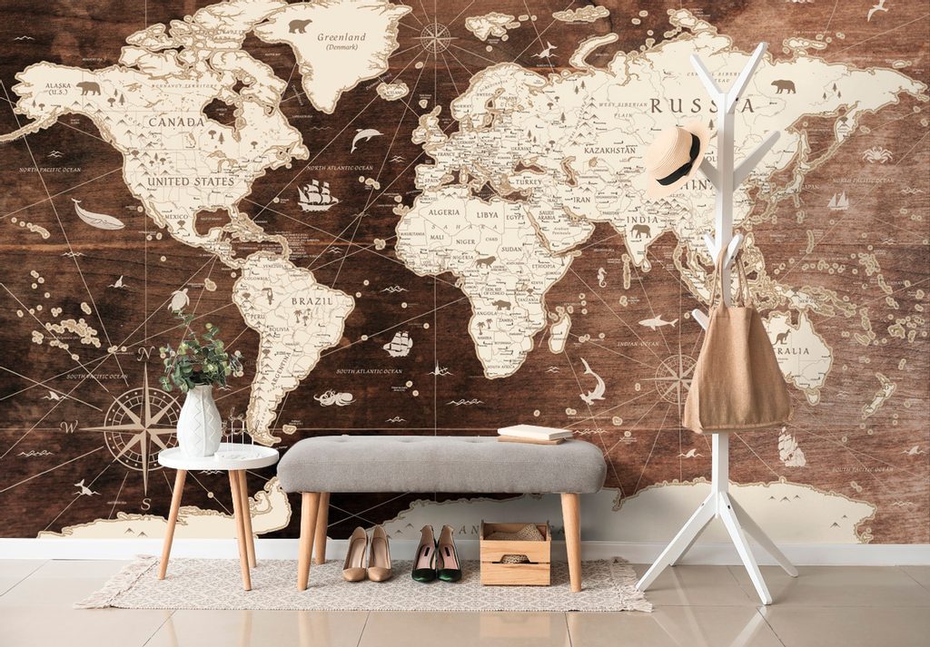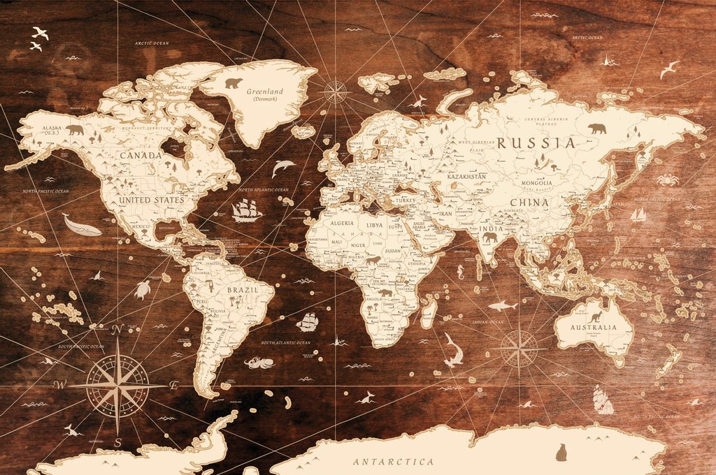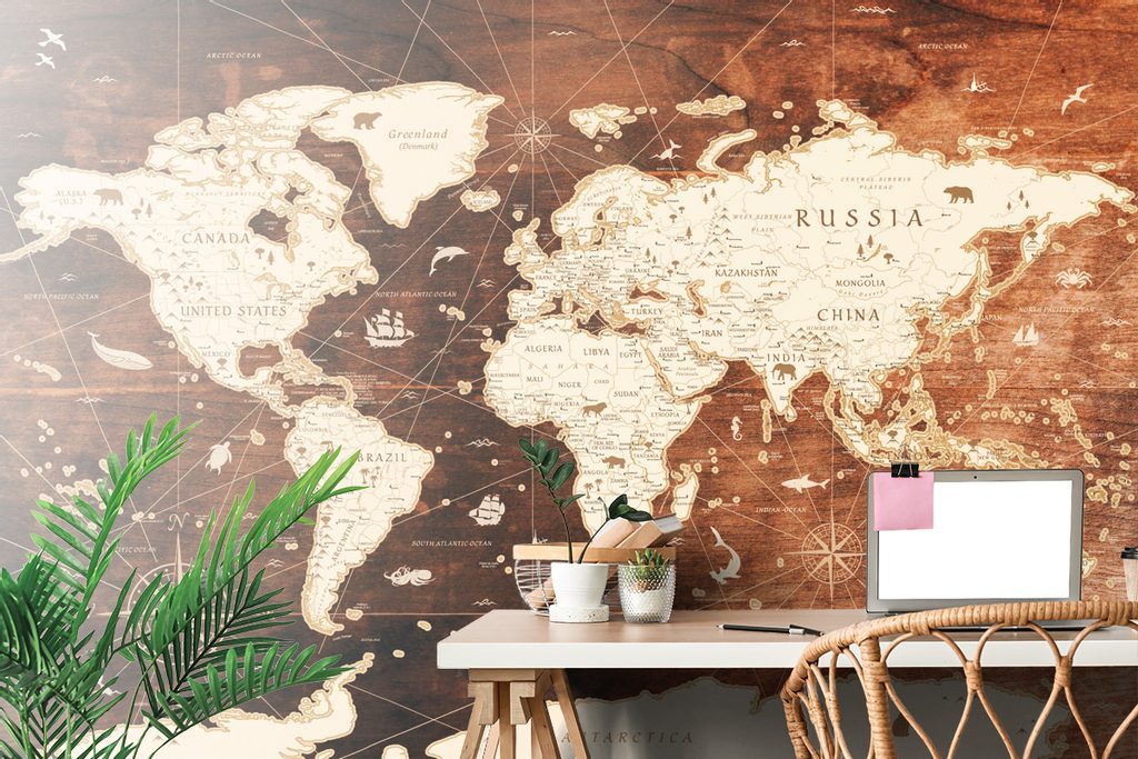 Tapéta történelmi világtérkép egy fából készült háttéren