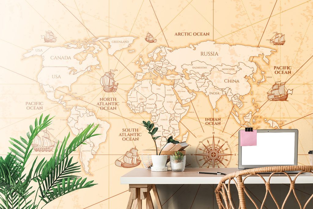 Tapéta világtérkép az ősi kereskedelmi útvonalakkal